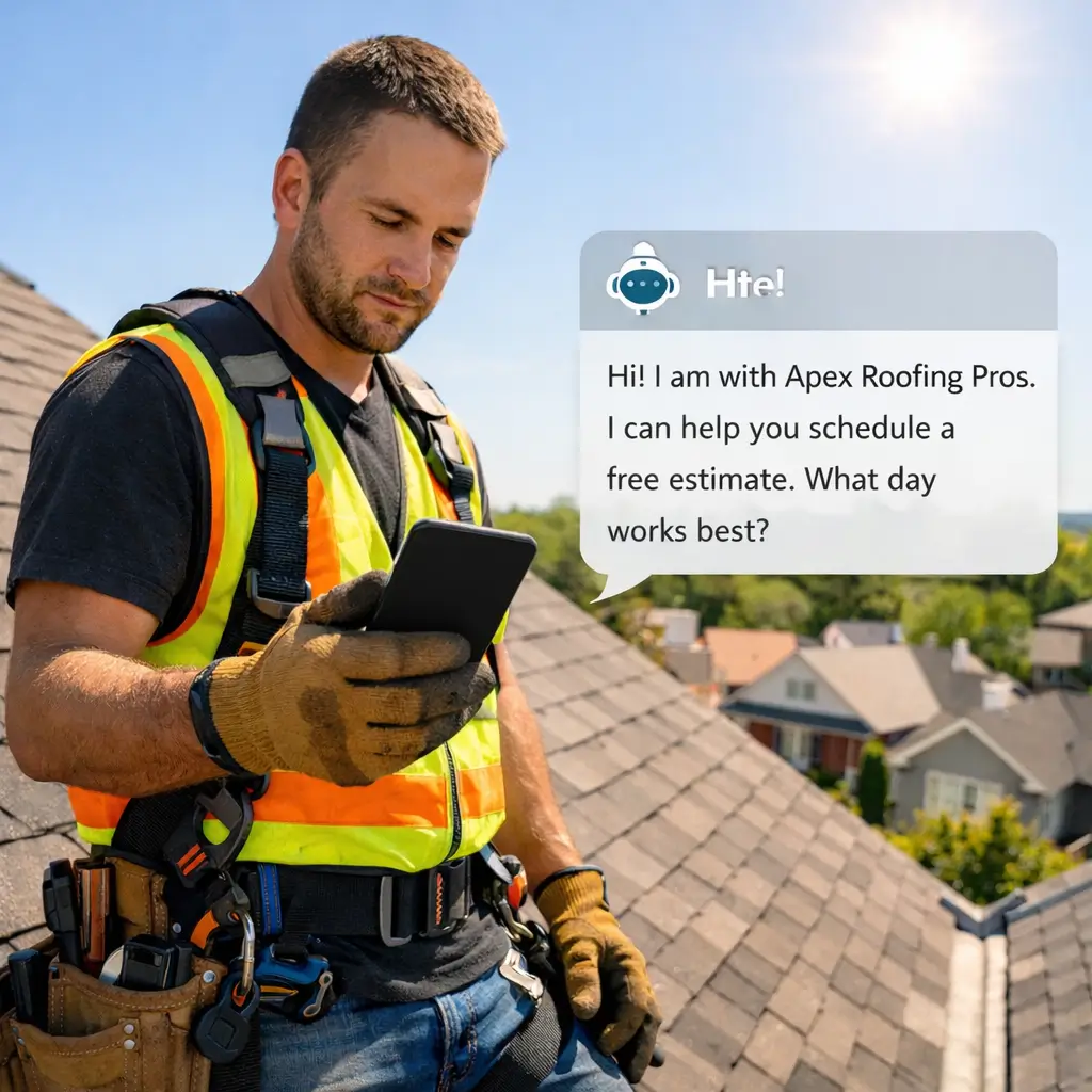 A homeowner calls. You are on a roof. They hang up and call the next guy. HuddleFlow AI™ texts them back instantly, handles the conversation, and gets the estimate on your calendar before you even climb down the ladder.